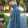 This floral prom dress is designed to offer a soft, romantic look suitable for formal occasions. The fabric feels lightweight against the skin, allowing comfortable movement throughout the evening. The fitted upper section gently shapes the body, while the skirt falls smoothly to create a balanced and elegant silhouette. Floral detailing adds visual interest without overwhelming the overall design. This dress is ideal for prom nights, evening events, and formal celebrations where a refined appearance is desired. The construction focuses on comfort and structure, making it suitable for extended wear during special occasions.