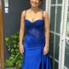 This mermaid prom dress features delicate spaghetti straps paired with a fitted satin bodice that follows the natural shape of the body. The silhouette gradually flares at the hem, creating graceful movement while maintaining a sculpted look. The satin fabric feels smooth against the skin and holds its structure throughout long events. Designed for prom nights and formal occasions, this dress balances elegance and comfort with a refined, polished appearance.