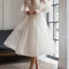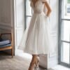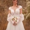 This strapless wedding dress features intricate lace detailing that enhances the bodice with visual texture and dimension. The structured fit offers gentle support while the skirt flows naturally for ease of movement. Designed to balance elegance and comfort, the dress creates a refined bridal silhouette. Suitable for formal weddings and special celebrations, it offers a timeless and graceful appearance.