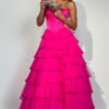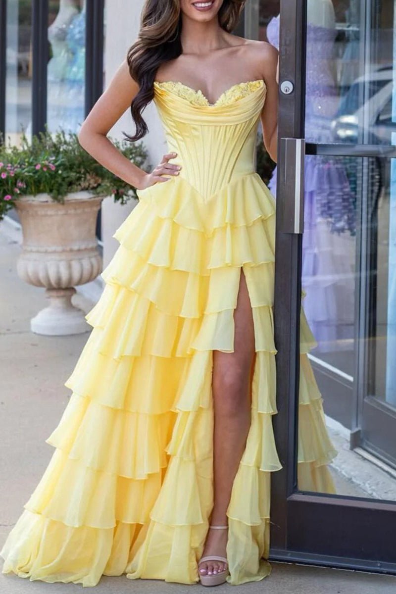 This strapless prom dress is designed with a smooth satin finish and a classic A-line silhouette that flatters the waist while allowing natural movement. The structured bodice offers gentle support, creating a balanced fit without feeling restrictive. The satin fabric feels soft against the skin and holds its shape beautifully throughout long events. Designed for prom nights and formal occasions, this dress delivers a clean, elegant look that remains timeless and refined.