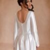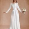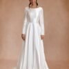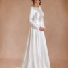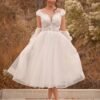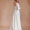 This V-neck wedding dress is crafted from lightweight chiffon that drapes gracefully with every step. The neckline frames the upper body while the softly fitted bodice transitions into a flowing skirt. Designed for comfort and movement, the dress maintains an airy feel without sacrificing structure. Ideal for ceremonies and receptions, it delivers a romantic bridal look with understated elegance.